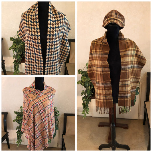 Cashmere Neck Scarves/Shawls & Coordinated Hat, 3 Choices