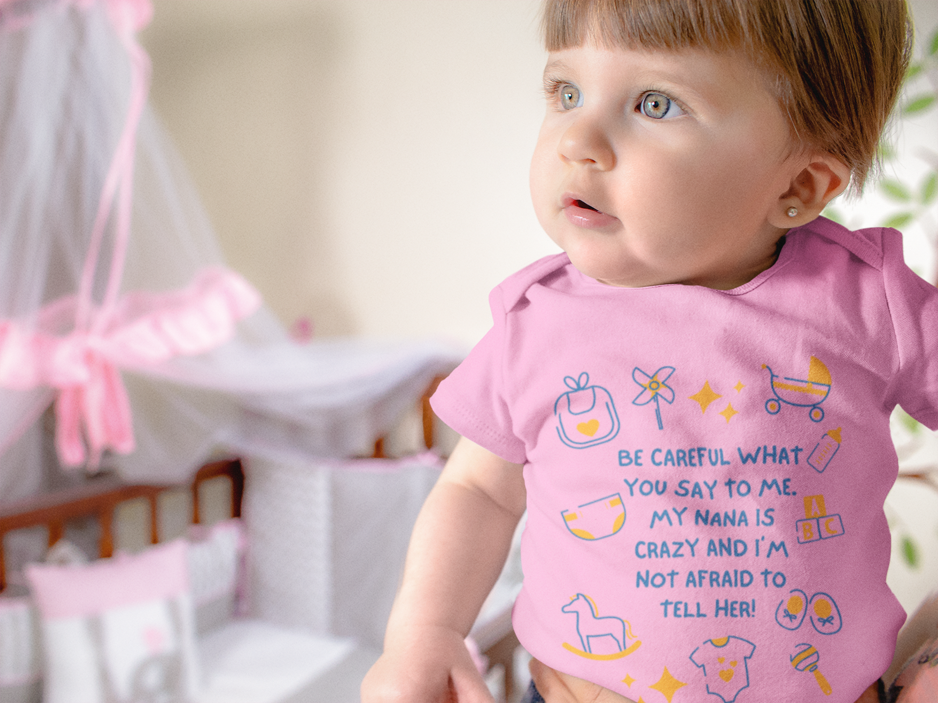 Be Careful What You Say To Me In Pink Baby One Piece, Newborn - 24 Months