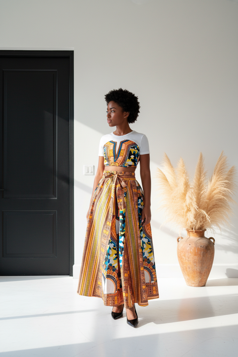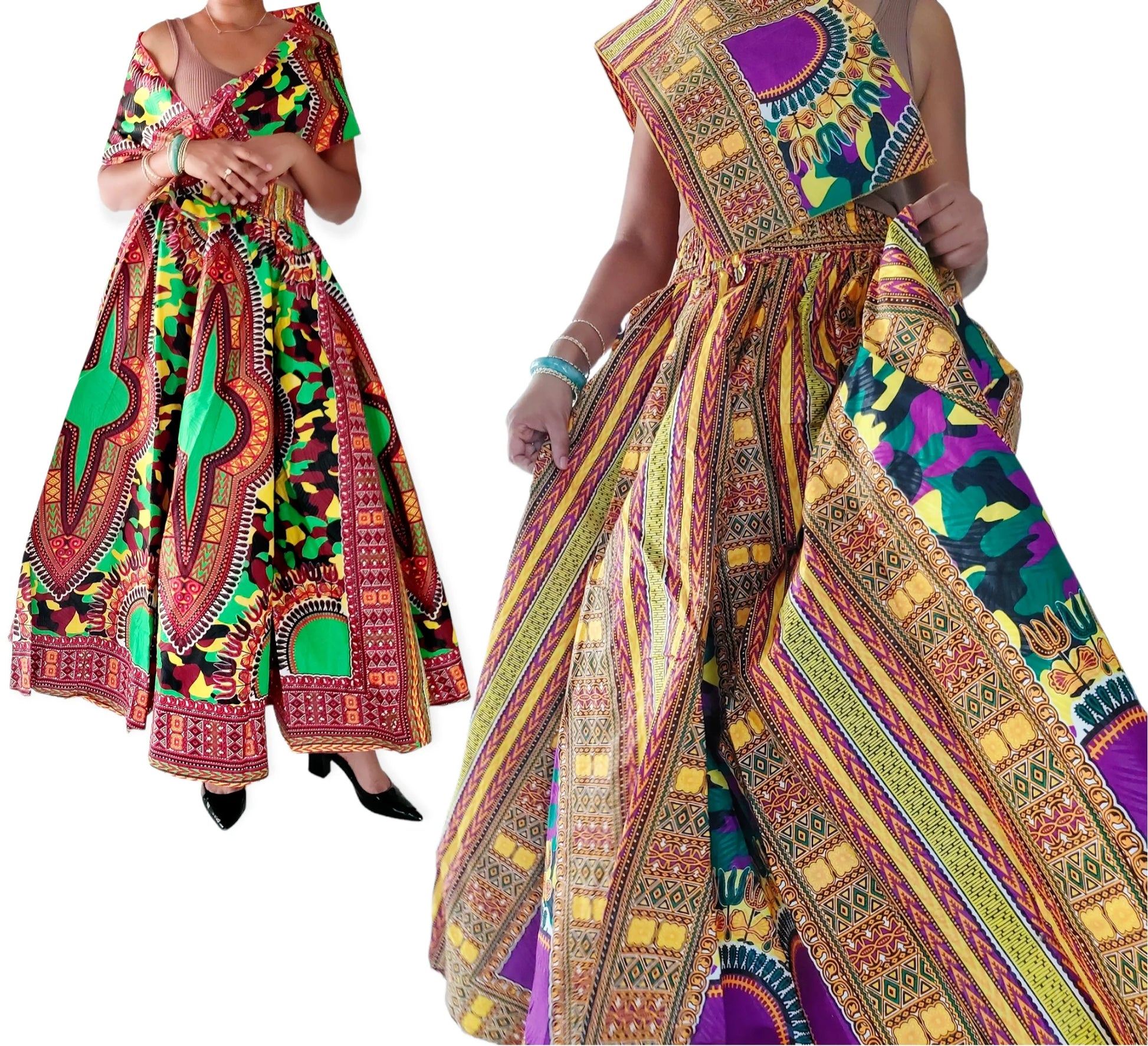Women Long Dashiki Print Skirt, Various Prints (free size)