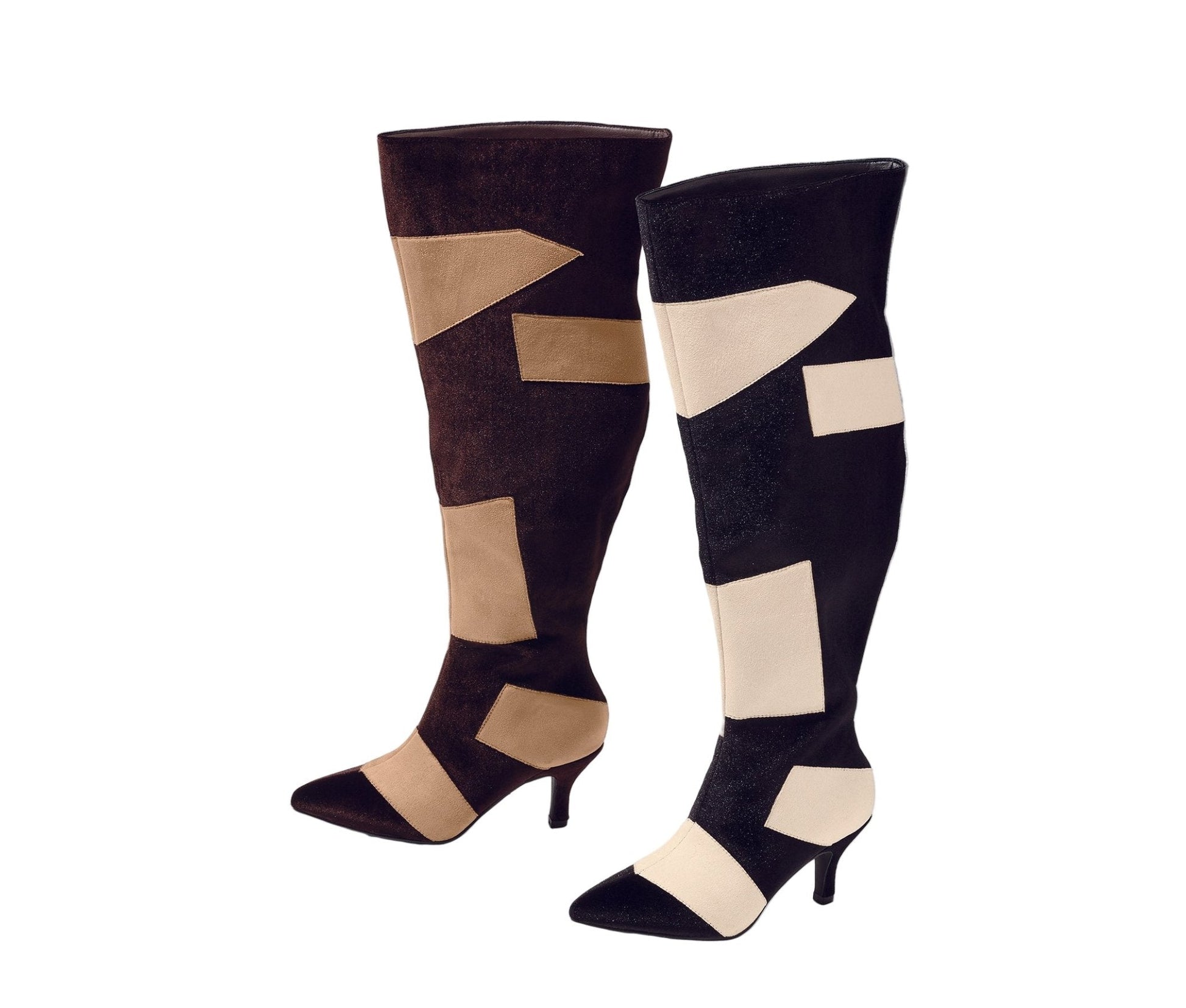 2 3/4" heels.Side zippers.Cushioned insoles.Fabric and manmade materials.Imported.