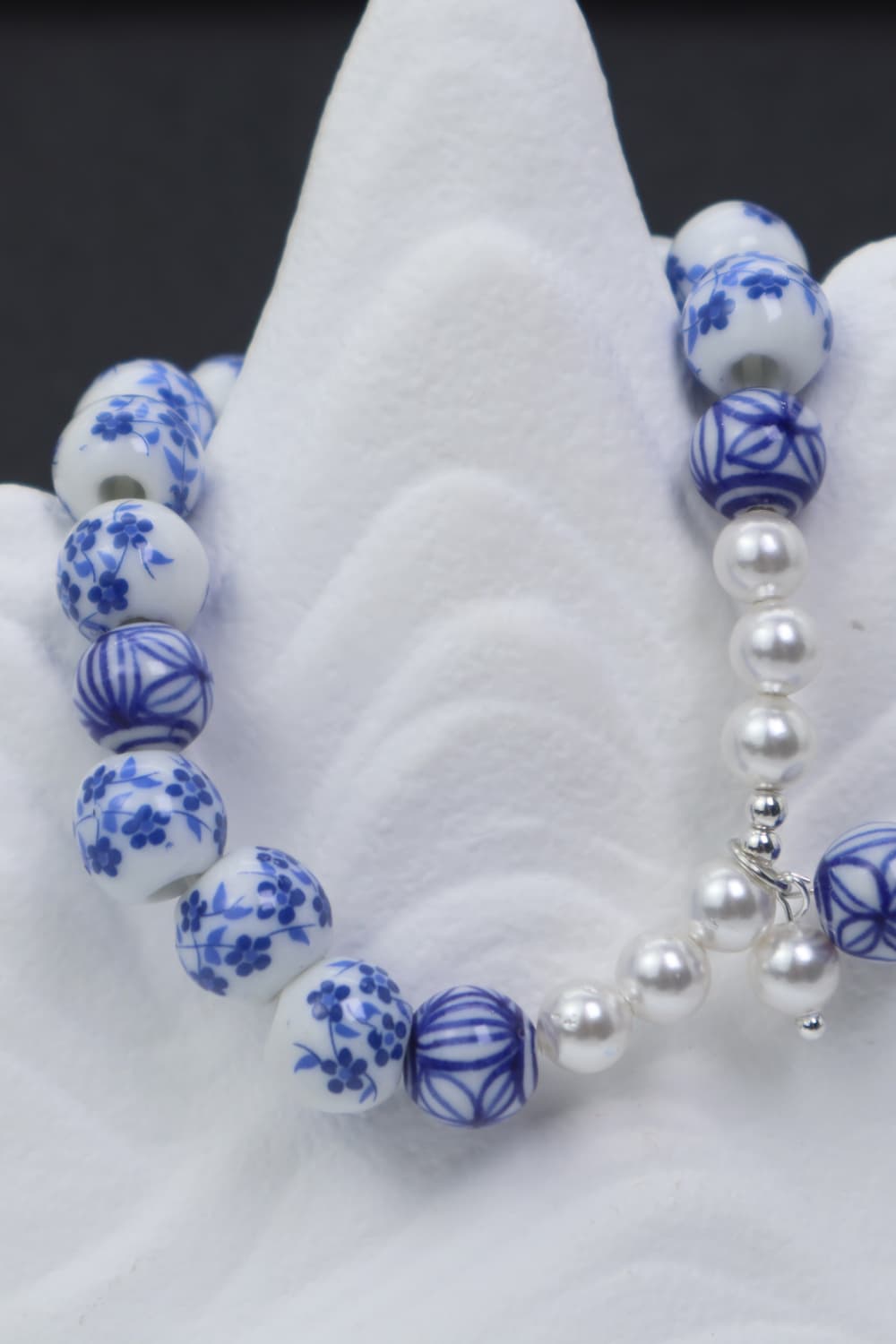 Hand-Drawing Ceramic Bead and Pearl Bracelet