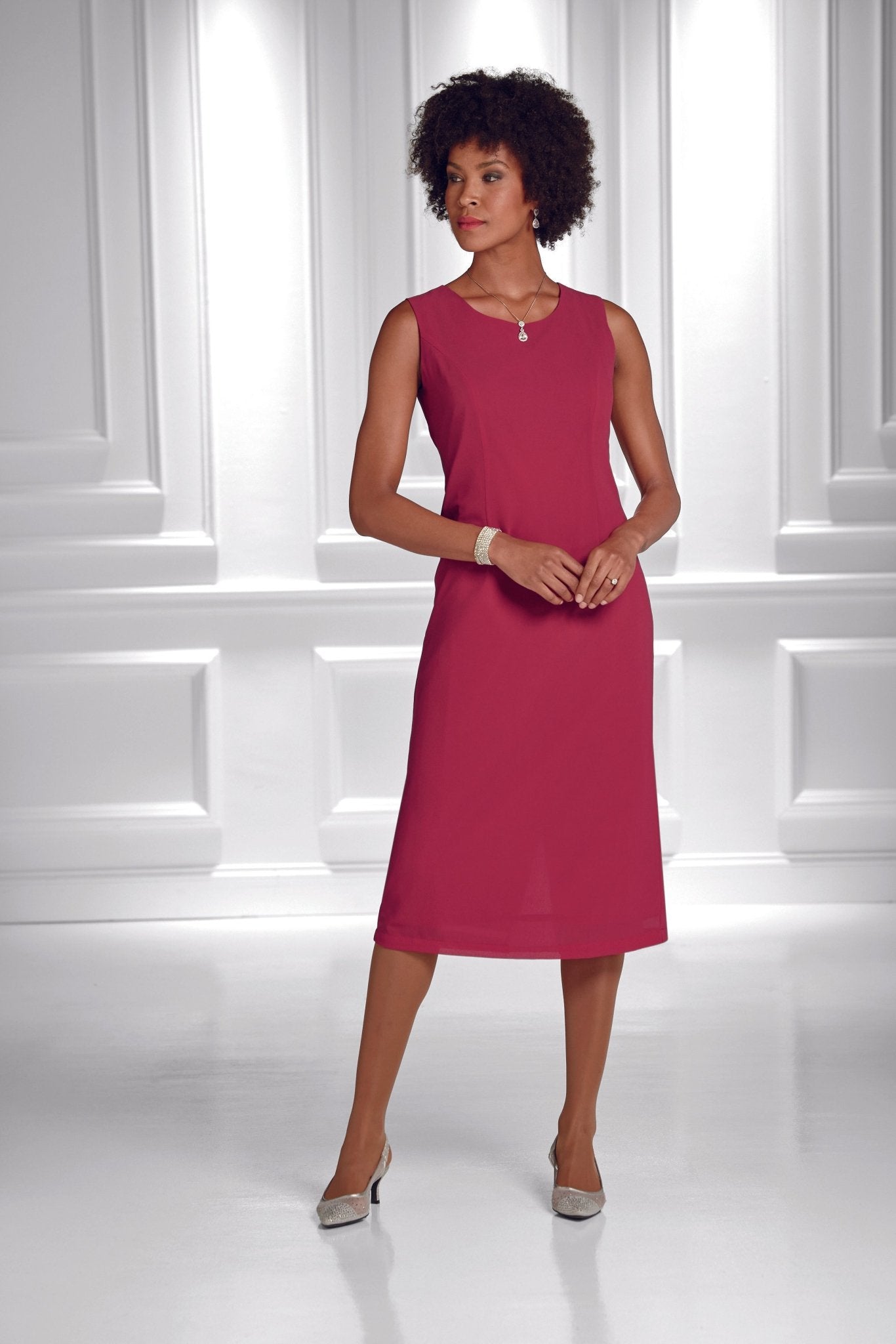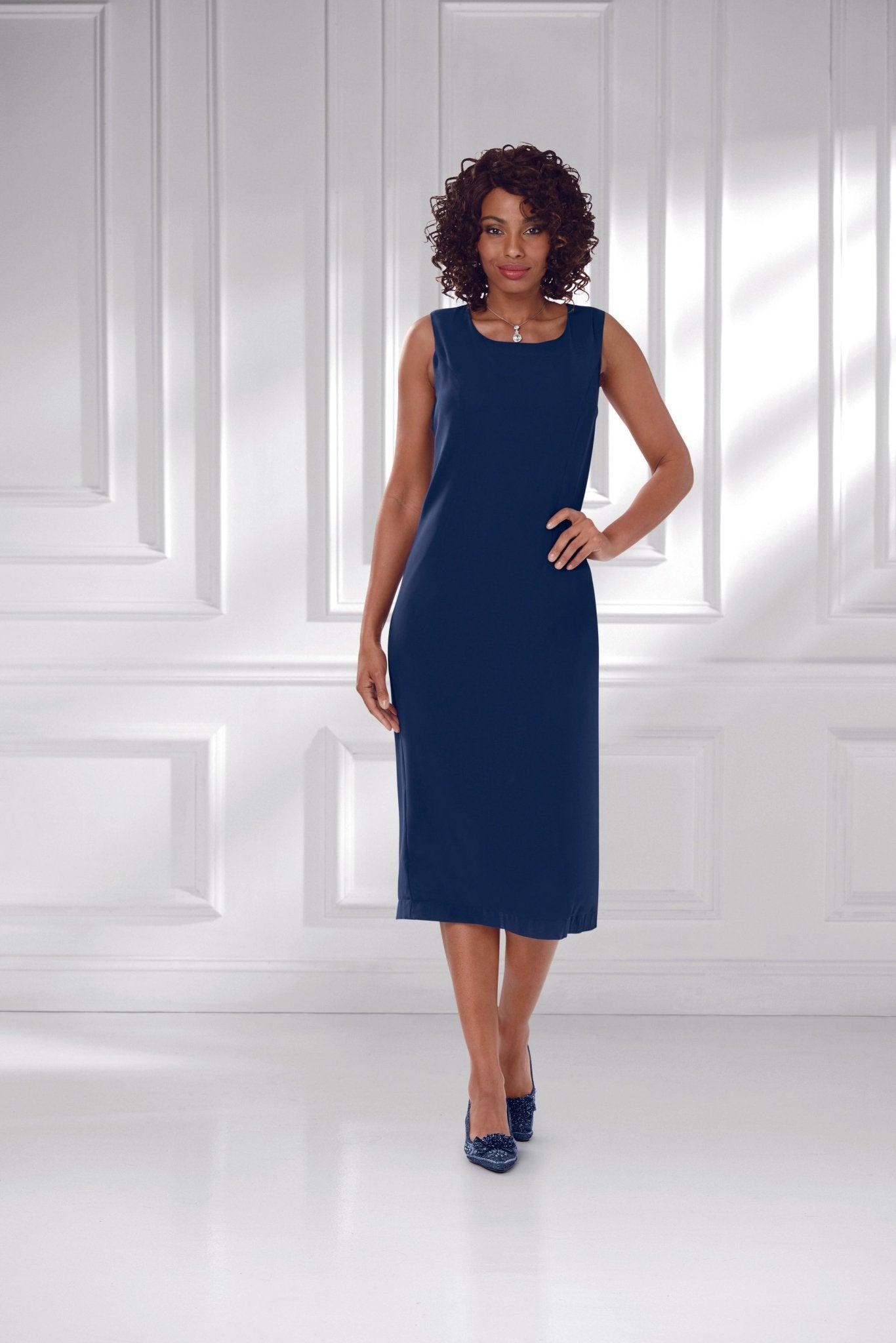 Lines of Shine Jacket Dress by EY Boutique — Such a beautiful drape in flowy, lightweight and breathable georgette. Open jacket: gently puffed shoulders, shimmery rhinestone accents. Sleeveless sheath dress: slimming princess seams for clean elongating lines and a flattering silhouette. Neat back zipper closure ensures the perfect fit. Back slit lets you move with ease. Expect compliments when you model our formal church dresses for ladies. Ideal for worship, weddings, cocktail parties and many other special occasions. The perfect Sunday Best jacket dress. Faith meets fashion in this luxe designer style from our exclusive collection of Especially Yours dresses. At EY, we are committed to offering African American women the best in high-quality fashions at affordable prices. Especially Yours clothing offers Black women so many ways to express their beauty, heritage and faith. Love it? Simply click “Add to Cart”.