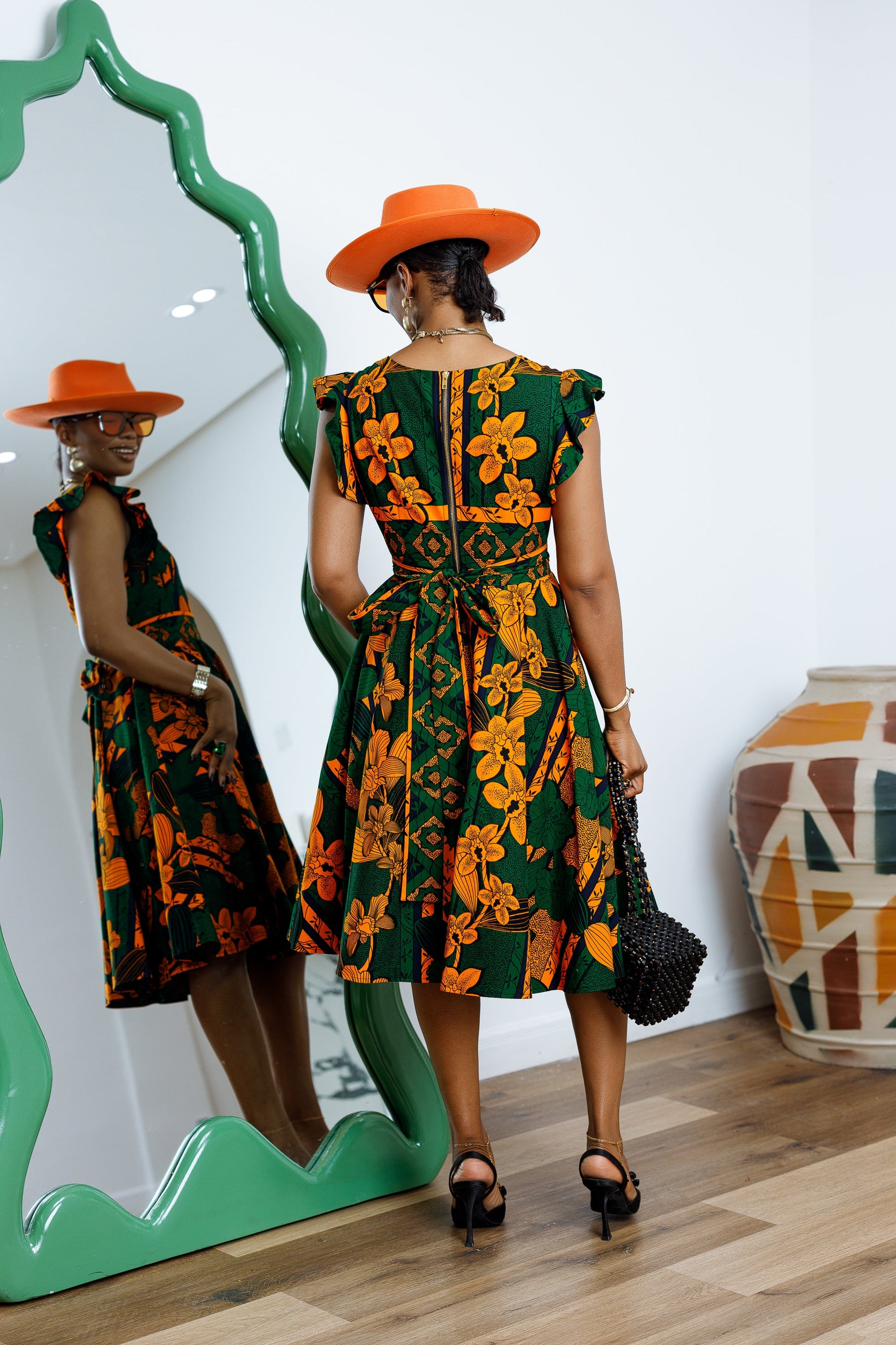 MALIKA AFRICAN PRINT FRILL SLEEVE DRESS