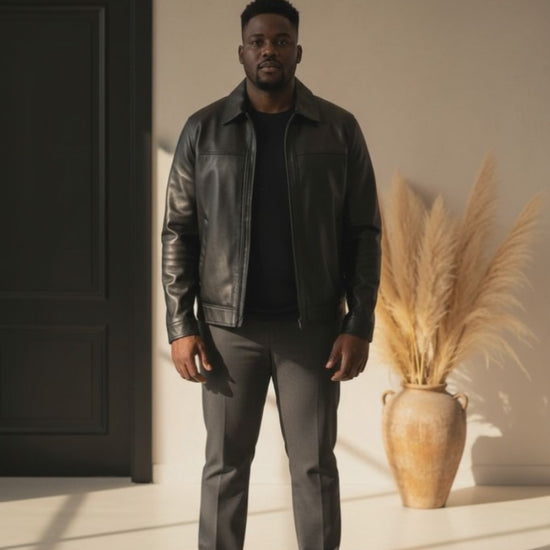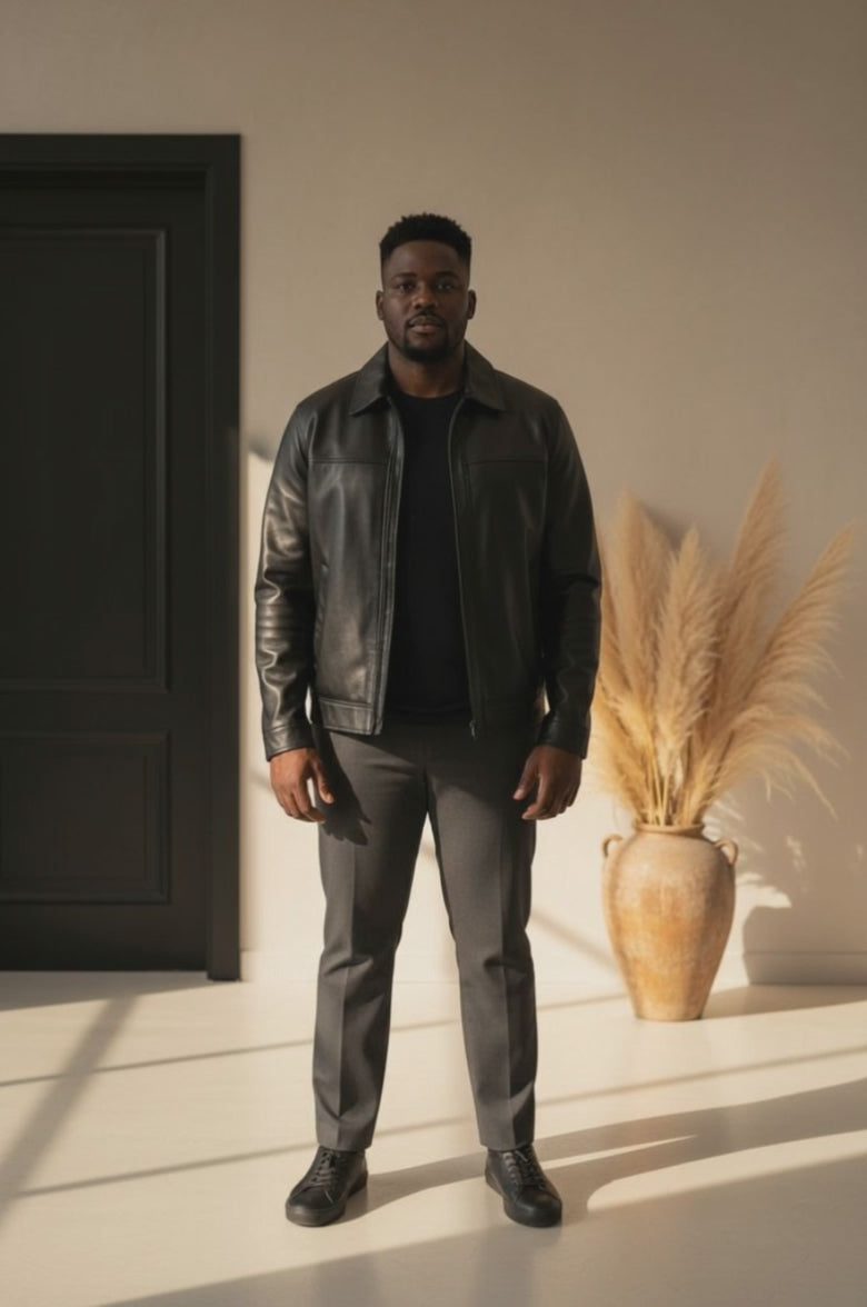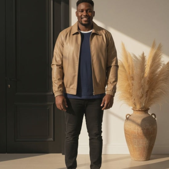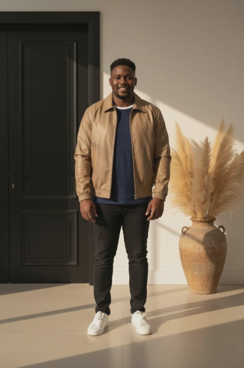 Men's Plus Size Zip Up Leather Jacket
