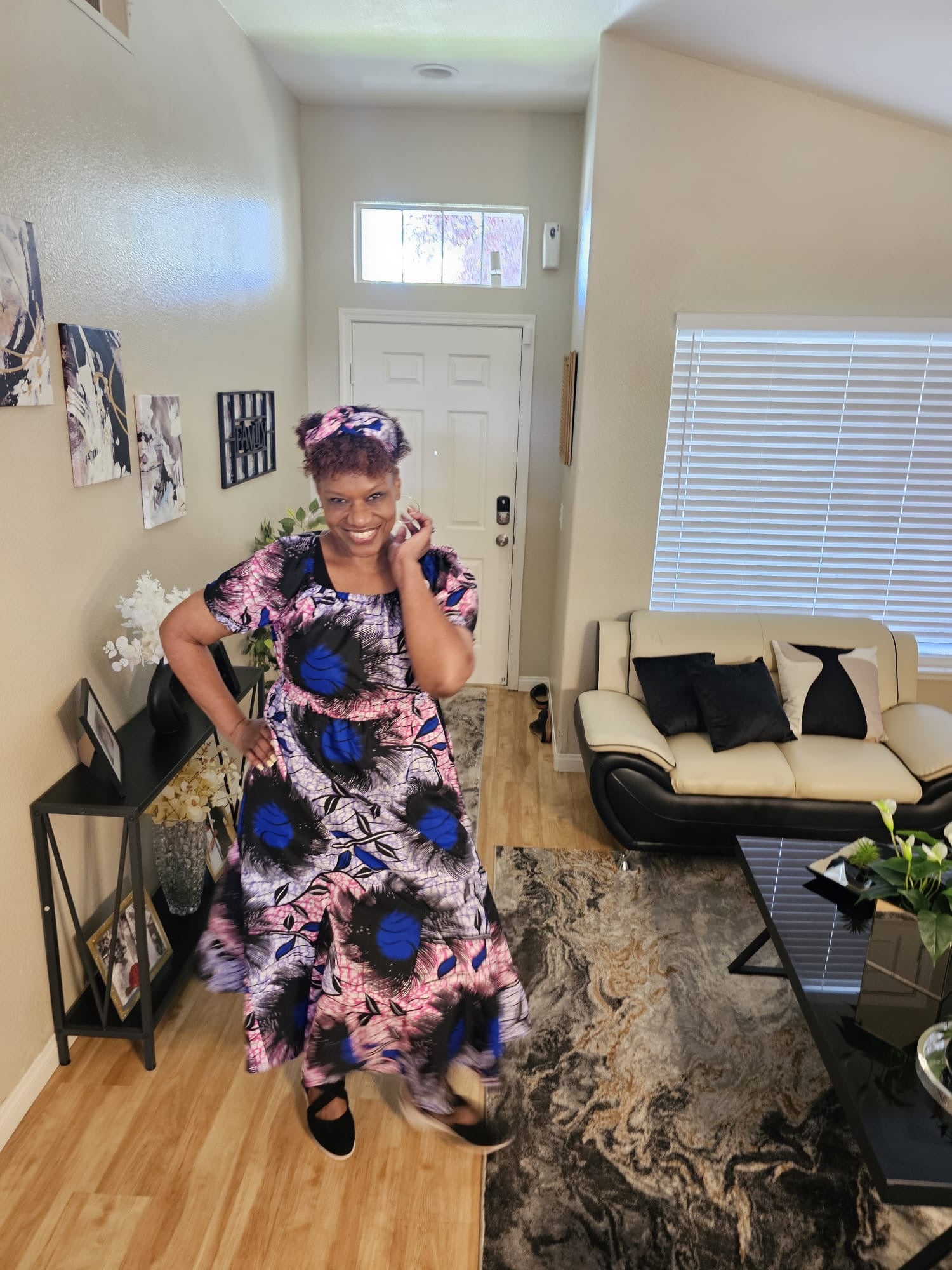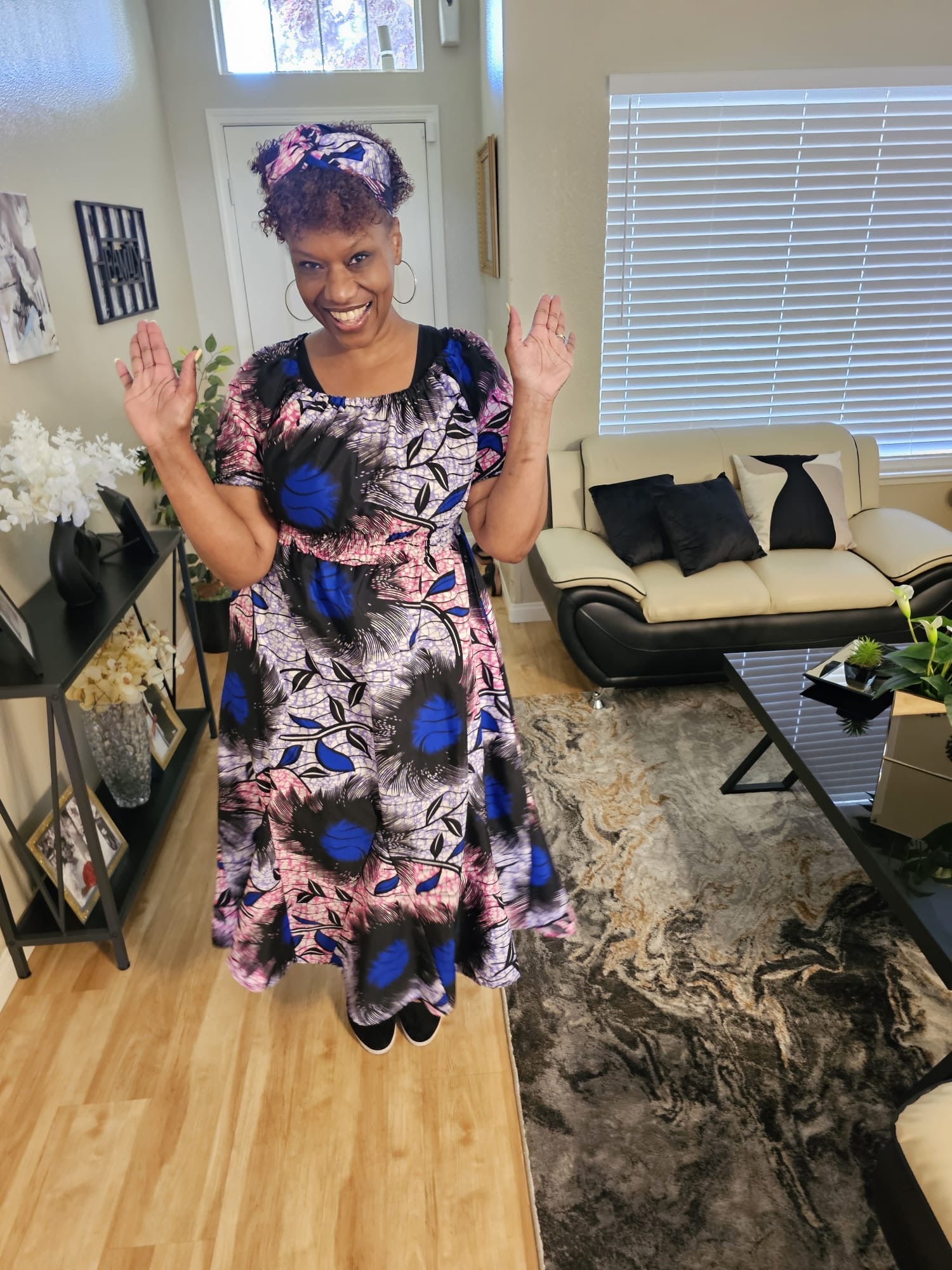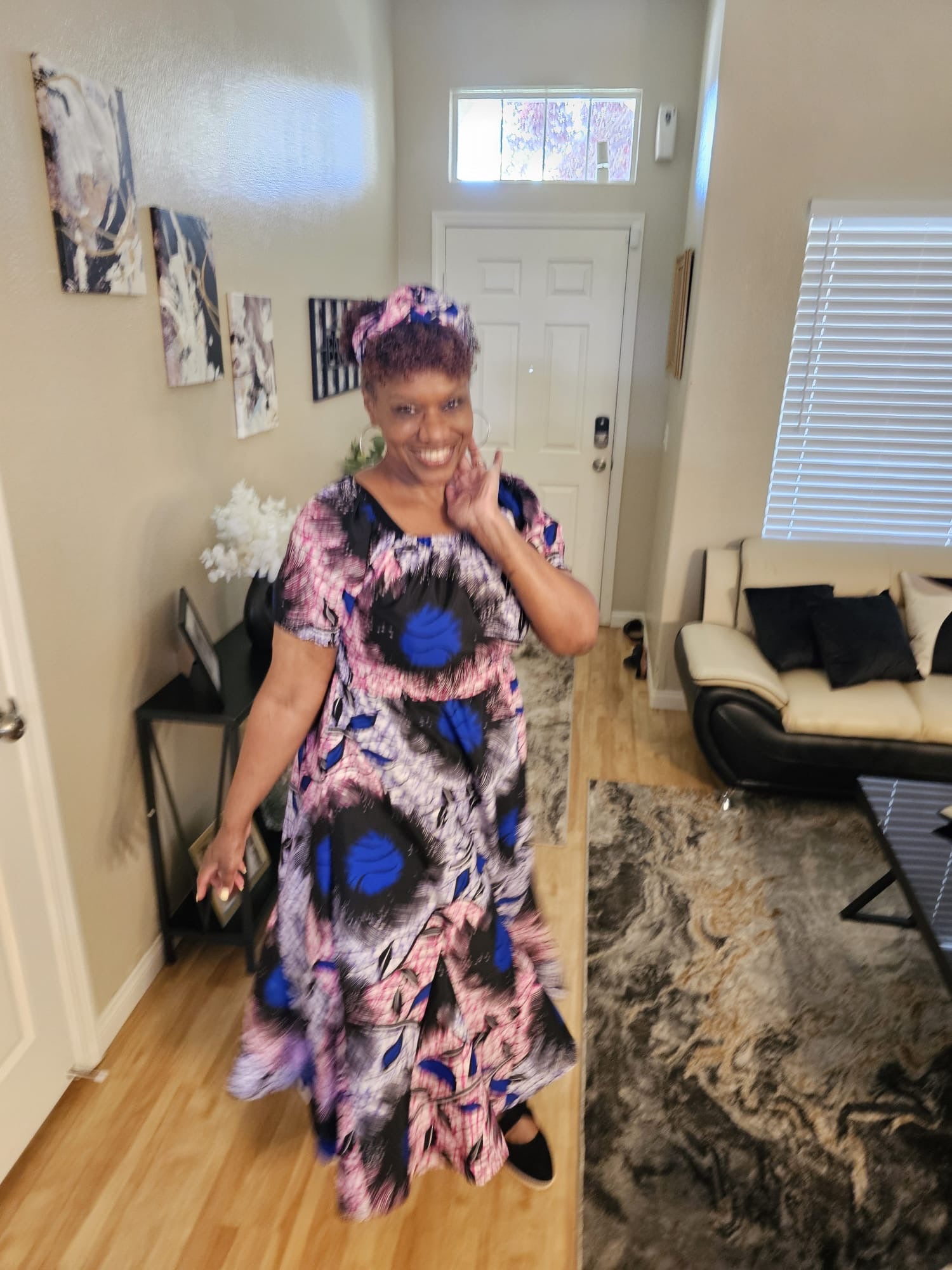 Short Puff Sleeve Maxi Dress with Head Wrap, Multiple Colors (free size)