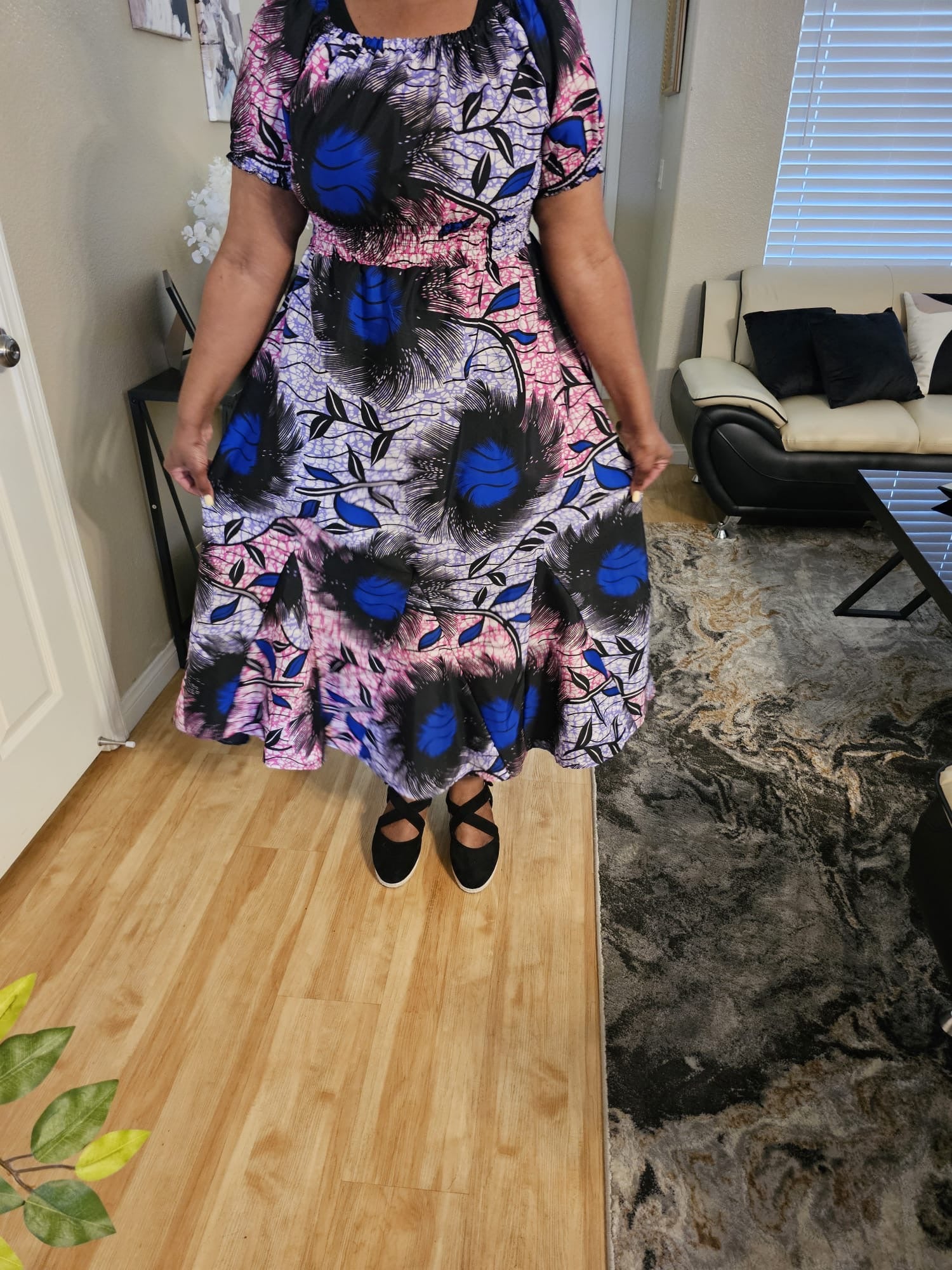Made from 100% cotton, this versatile maxi dress can be styled with a round neckline or worn off the shoulder. It features convenient side pockets and comes with a coordinating head wrap. Designed as a free size, it comfortably fits sizes S through 2XL.