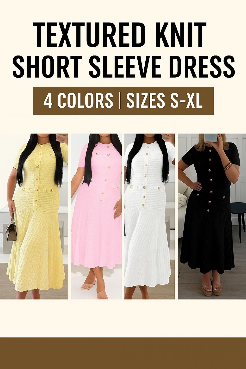 Step into effortless elegance with our Textured Knit Short Sleeve Dress, available in black, white, pink, and yellow. ✨